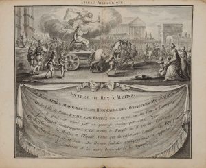 Il est composé de : un feuillet de titre dans un encadrement gravé ; un double feuillet de dédicace avec frontispice décoré d'une scène allégorique représentant le roi partant pour le sacre ; la carte de la route, par Villers-Cotterêts et Fismes, en 22 planches doubles légendées ; un double feuillet : tableau allégorique de l'Entrée du roi à Reims. Enfin, un grand plan dépliant de la ville de Reims.
