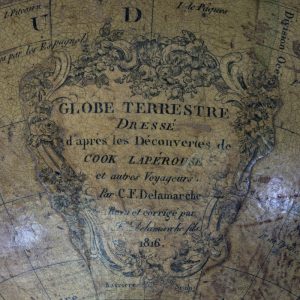 " Globe terrestre dressé d'après les découvertes de Cook Lapérouse & autres voyageurs, par C.F Delamarche, revu et corrigé par F. DELAMARCHE Fils, 1816 " Et