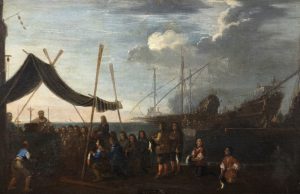 ÉCOLE FRANÇAISE VERS 1680. La messe des officiers au port devant les galères.
