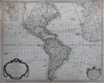 • DELAMARCHE. Amérique ou Indes occidentales avec les nouvelles découvertes du Capitaine Cook depuis le Détroit de Behrings […], 1812. Carte gravée en coloris d'époque. Pliure centrale, rousseurs, tâches, et léger manque en haut à gauche. Non examinée hors de la marie-louise et du cadre. 55 × 68,3 cm (à vue).