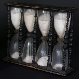 Ce sablier permet de mesurer les 1/4 ; 1/2 et 3/4 d'heure.