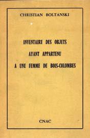 Christian Boltanski. Inventaire des objets ayant appartenu à une femme de Bois-Colombes.Illustrations en noir. Cnac, 1974. In-12 br. (Bob Calle, p. 38). édition originale bien complète de la biographie de l'artiste sur feuillet.