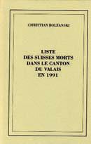 Christian Boltanski. Liste des Suisses morts dans le canton de Valais en 1991. Musée cantonal des Beaux-arts de Lausanne, 1993. In-12 br. (Bob Calle, p. 78). édition originale, un des 50 premiers numérotés et signés par Boltanski.