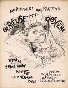 [Pierre Bonnard] Répertoire des Pantins. Lithographies originales de Pierre Bonnard. Mercure de France, [1898]. Trois chansons à la charcutière, n° 1 Du pays tourangeau. Poème de Franc-Nohain, musique de Claude Terrasse. N° 2: Malheureuse Adèle.