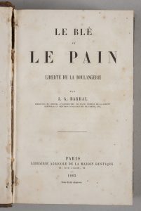 BARRAL. Le blé et le pain. Liberté de la boulangerie. Paris. Librairie agricole de la maison rustique. 1863.