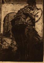 Frank Brangwyn. Homme portant une pile de livres. Eau forte originale, format 20x13,5 cm. Publication de la Gazette des Beaux-arts. Joint. Anders Zorn. Le Musicien de village. Eau forte originale, format 16x12 cm. Publication de la Gazette des