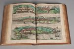 •I 10 ff., dont le titre-frontispice, 59 vues et plans de villes [une première planche, non numérotée mais chiffrée A, suivie de 58 planches numérotées 1 à 58], 12 ff. d’index. Sur le f. A (Londinum), poème manuscrit en vers daté 1666.