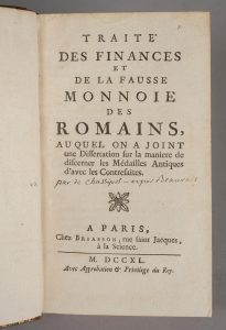 [CHASSIPOL (François de)]. Traité des finances et de la fausse monnoie des Romains. Paris. Briasson. 1740.
