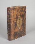 In-4, plein veau d’époque, filet doré en encadrement sur les plats, large motif doré central, dos à nerfs orné, reliure très frottée, largement restaurée.