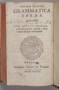 ERPENIUS (Thomas). Grammatica Ebrae generalis. Geneve, Jean de Tournes, 1627.