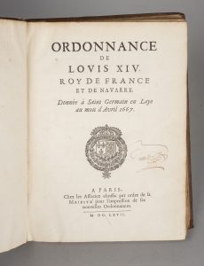 ORDONNANCE DE LOUIS XIV. Paris. Chez les associés choisis par ordre de sa Majesté pour l’impression de ses nouvelles Ordonnances. 1667.