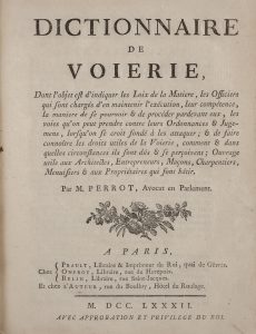 PERROT. Dictionnaire de Voierie... Paris. Prault, Onfroy, Belin. 1782.