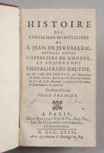 VERTOT (Abbé de). Histoire des chevaliers hospitaliers de S. Jean de Jérusalem, appelez Chevaliers de Rhodes. Paris. Quillau. 1727.