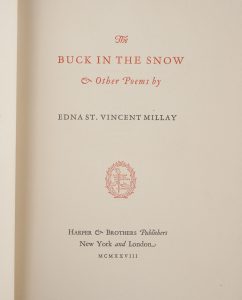 ST. VINCENT MILLAY. Edna. The Buck in the snow & Other Poems. London-New York. Harper & Brothers. 1928.