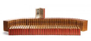 80 vol. in-12 ; veau blond de l’époque, triple filet doré en encadrement sur les plats. Dos lisse orné de fleurons dorés.