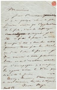 Hugo le remercie pour sa gracieuse lettre et son excellent article ; C’est par les esprits comme le vôtre que travaille la poësie (…).