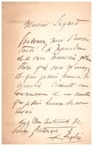 Auguste RODIN. 1840-1917. Sculpteur. L.A.S. à Ségard. S.l.n.d.