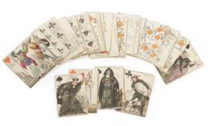 JEU DE CARTES, 1819 Jeu récréatif de 51 cartes dit ‘’Jeu à rire des journaux’’ dont la publication serait de Grandèbes, 91 rue de Richelieu à Paris.