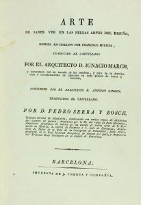 Compuesto por los arquitectos italianos Francesco Milizza (1723-1798) y Antonio Ginesi (1791-1824) y traducido al español por los arquitectos catalanes Ignasi March y Pere Serra i Bosch. Antonio Ginesi se instaló en Barcelona donde falleció repentinamente a la edad de 33 años, después de construir el cementerio del Poblenou, que acabó siendo su última residencia.