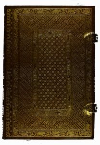 4º. 112 fol. iluminados. Enc. piel gofrada. Nervios. Lomo cuajado. Cortes dorados. Cierres metálicos.
