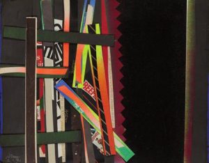 Dorny. Dis-moi promeneur où cours-tu de champs en chemin… Assemblage et collage. Format 41x31,5 cm. Daté, 12-1-90, signé.
