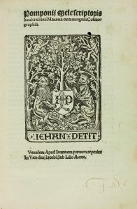 1513. (COSMOGRAFIA). MELA, POMPONIO : POMPONII MELE SCRIPTORIS LOCULENTISSIMI MAXIMA CURA RECOGNITI COSMOGRAPHIA. (A la fin : ) Paris : Johannis Parvi, 1513.
