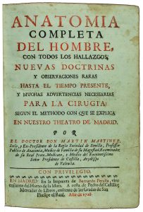 1728. (MEDICINA-ANATOMIA). MARTINEZ, MARTIN : ANATOMIA COMPLETA DEL HOMBRE, CON TODOS LOS HALLAZGOS, NUEVAS DOCTRINAS Y OBSERVACIONES RARAS HASTA EL TIEMPO PRESENTE, Y MUCHAS ADVERTENCIAS NECESSARIAS PARA LA CIRUGIA : SEGUN EL METHODO CON QUE SE...