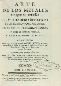 1770 ca. (INDUSTRIA-METALES). BARBA, ALVARO ALONSO : ARTE DE LOS METALES EN QUE SE ENSEÑA EL VERDADERO BENEFICIO DE LOS DE ORO, Y PLATA POR AZOGUE. EL MODO DE FUNDIRLOS TODOS, Y COMO SE HAN DE REFINAR Y APARTAR UNOS Y OTROS. Madrid : oficina...