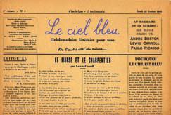 Le Ciel Bleu. Hebdomadaire littéraire pour tous. Direction Rose Capel. Comité de rédaction Paul Colinet, Christian Dotremont, Marcel Marïen. Revue in-4 ff. 7 numéros du 22 février au 19 avril 1945. Collaboration de Breton, L. Carroll, P. Colinet,