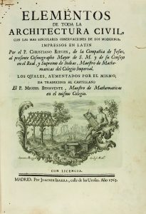 1763. (ARQUITECTURA). RIEGER, CHRISTIANO : ELEMENTOS DE TODA LA ARCHITECTURA CIVIL, con las más singulares observaciones de los modernos, impressos en latin ... Madrid : por Joachin Ibarra, 1763.