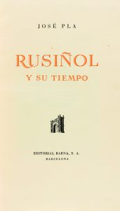 1942. (ARTE). PLA, JOSE : RUSIÑOL Y SU TIEMPO. Barcelona : Edit. Barna ; Sabadell : Imp. Juan Sallent, s.a.