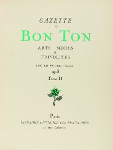 1912-1913. (MODA-BIBLIOFILIA). VOGEL, LUCIEN : GAZETTE DU BON TON. ARTS MODES & FRIVOLITES. Paris : Libr. Centrale des Beaux-Arts, 1912-1913.
