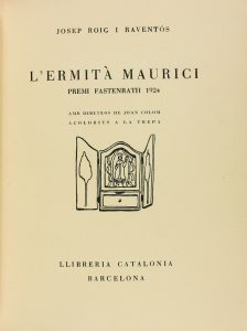 1924. (LITERATURA-BRUGALLA). ROIG I RAVENTOS, JOSEP : L´ERMITÀ MAURICI. Premio Fastenrath 1924. Barcelona : LLibreria Catalonia, 1936.