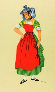 1942. (BRUGALLA-BIBLIOFILIA). KLEIN, PAUL GEORGES : COSTUMES DU SUD-EST XVIII et XIX SIECLES. Bresse, Dauphiné, Comtat Benaissin, Comté de Nice, Lyonnais, Provence, Savoie. Prefacio de Jean Perquelin. Grenoble : Imp. Generale, 1942.