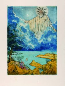 1944. (BIBLIOFILIA). CARLDERON DE LA BARCA, PEDRO : AUTOSACRAMENTAL ALEGORICO. EL GRAN TEATRO DEL MUNDO. Con aguafuertes de Ramon de CAPMANY. Prólogo y anotaciones de Francisco Salva. Barcelona : Hora Luen, 1944.