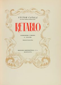 1944. (LITERATURA-BRUGALLA). CATALÁ, VÍCTOR : RETABLO. Barcelona : Ediciones Mediterráneas, 1944.
