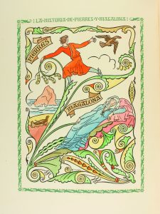1946. (BIBLIOFILIA). D´IVORI [ilustrador] : HISTORIA DEL NOBLE Y VENTUROSO CABALLERO PIERRES hijo del Conde de Provenza y de la Gentil Doncella Magalona hija del Rey de Nápoles. Barcelona : Imp. Horta- Mons Floris, 1946.