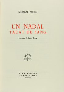 1961. (BIBLIOFILIA-BRUGALLA). CARDÚS, SALVADOR : UN NADAL TACAT DE SANG. LA MORT DE L´ABAT BIURE. Colección ´Biblioteca Guió d´Or´. Barcelona : Aymà Editors, 1961.
