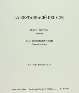 1987. (BIBLIOFILIA). ALZUETA, MIQUEL ; HERNANDEZ PIJUAN, JOAN : LA RESTAURACIO DEL COR. Col·lecció Tabelaria nº 8. Barcelona : Antoni J. Agra, 1987.