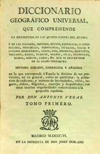 1806. (GEOGRAIA). VEGAS, ANTONIO : DICCIONARIO GEOGRÁFICO UNIVERSAL. Madrid : Imp. de Josef Doblado, 1806.