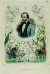 Ilustr. con 12 grabados coloreados, fuera del texto (uno es retrato de J. J. Grandville) y con notaciones musicales en el texto.