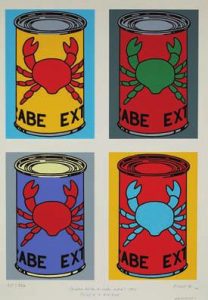 FLOC'H. Quatre boites de crabe extra. 1983. Sérigraphie couleurs, numérotée 55/350, signée en bas à droite. Format 75x56 cm.