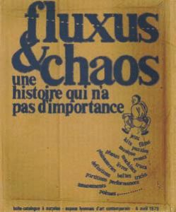 Fluxus & Chaos, Une Histoire Qui N'A Pas D'Importance. Boite-catalogue, 28x35x5 cm, à surprise, vide à Lyon, elle s'est remplie lors de l'Exposition « Fluxus International & C° » de Nice. Espace lyonnais d'art contemporain. 4 avril 1979. « Cette
