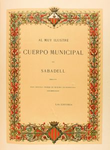 1881. (SABADELL-FOTOGRAFIA). MARTI, JUAN : PANORAMA FOTÓGRAFICO DE SABADELL o sea coleccion de vistas de los monumentos y edificios mas notables de esta industriosa ciudad. Sabadell : Imp. y Lit. de Antonio Vives, 1881.