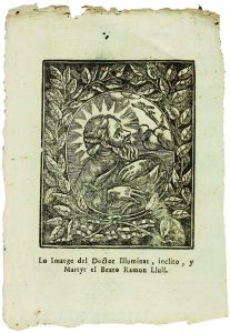 1744 ca. (LIULIANA). [APARICIÓ DE CHRIST CRUCIFICAT] LO IMATGE DEL ILUMINAT DOCTOR, INCLYTO, Y MARTYR EL BEATO RAMON LLULL. [Palma de Mallorca] : [Pere Antoni Capò], s.a.