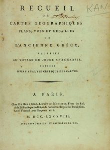 1788. (GRABADOS-MUNDO CLASICO-VIAJES). [BARBIE DU BOCAGE, VICTOR AMEDEE] : RECUEIL DE CARTES GEOGRAPHIQUES, PLANS, VUES ET MEDAILLES DE L´ANCIENNE GRECE RALATIFS AU VOYAGES DU JEUNE ANACHARSIS PRECEDE D´UNE ANALYSE CRITIQUE DES CARTES. Paris :...