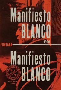 Fontana. Manifiesto blanco. Affiche de la Galleria Apollinaire, octobre 1966. Format 38x56,5 cm.