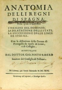 1546. (HISTORIA ESPAÑA). PINTO RIBERO, DOTTOR GIO : ANATOMIA DELLI REGNI DI SPAGNA, nella quale si dimostar l´origine del dominio, ladilatatione delle stati, la successione delle linee se suoire. Con la distintione della Corona di Portogallo da...
