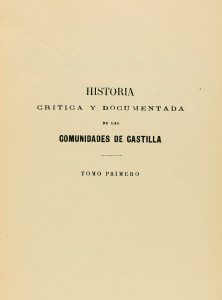 1897. HISTORIA CRITICA Y DOCUMENTADA DE LAS COMUNIDADES DE CASTILLA. Madrid : Real A. de la Historia (Est. Tip. de la Viuda e Hijos de M. Tello), 1897-1899.
