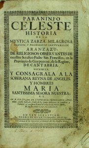 1690. (RELIGION-ARANZAZU-PAIS VASCO). LUZURIAGA, JUAN DE : PARANINFO CELESTE. HISTORIA DE LA MYSTICA ZARZA, MILAGROSA IMAGEN Y PRODIGIOSO SANTUARIO DE ARANZAZU, de religiosos observantes de nuestro serafico padre san Francisco, en la Provincia de...